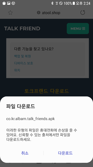 1.안드로이드 폰의 설정에서 보안 관련 중 출처를 알 수 없는 앱을 허용